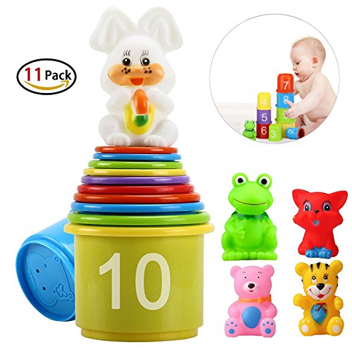 Stacking Cups Early Educational Toddlers Toy Bathtub Toys with Numbers & Animals Game for Kids Baby 11 Pack