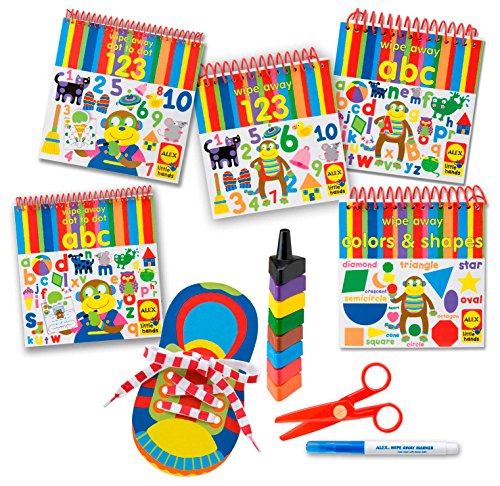 The ALEX Little Hands line encourages a child’s development. The Ready, Set, School kit covers a wide range of activities to help get your child started. Children will learn important hand-eye coordination by using stencils to trace and outline shapes. The wipe away activity books will help kids with fine motor skills. Practice writing ABC’s and 123’s over and over again by using the included wipe away marker and wiping the pages clean with a damp cloth.