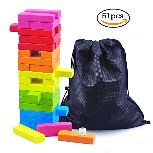 Meland Stacking Game – 51pcs Colorful Wooden Building Blocks for Kids with Storage Bag